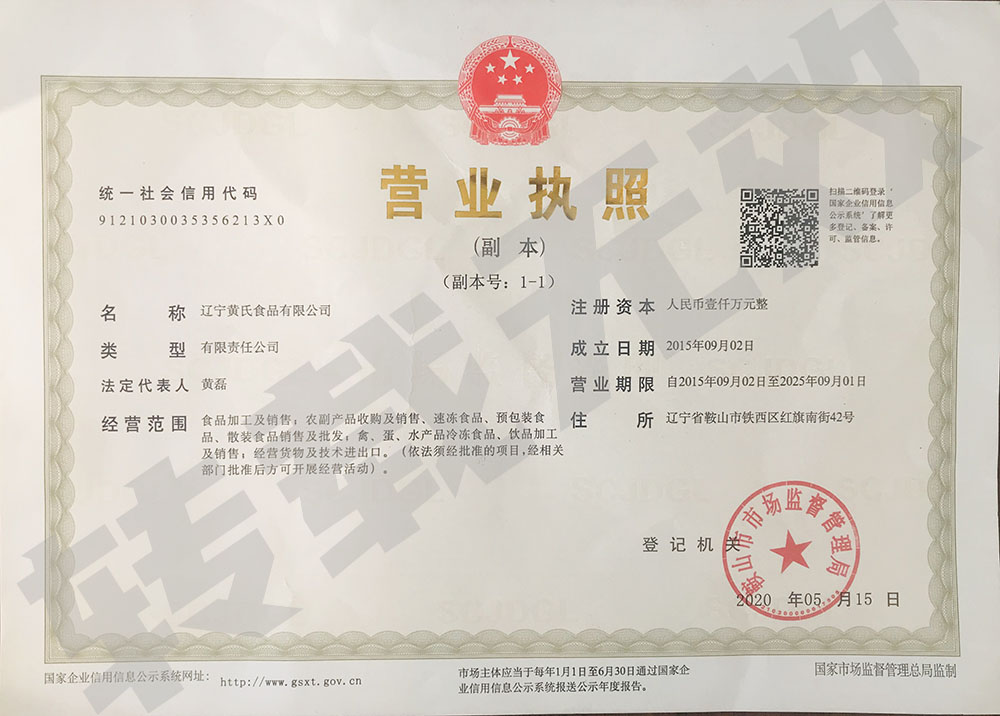 Copyright © 2020 遼寧黃氏食品有限公司 All Rights Reserved.    技術(shù)支持:鞍山龍采     遼ICP備2020013733號(hào)-1    營(yíng)業(yè)執(zhí)照